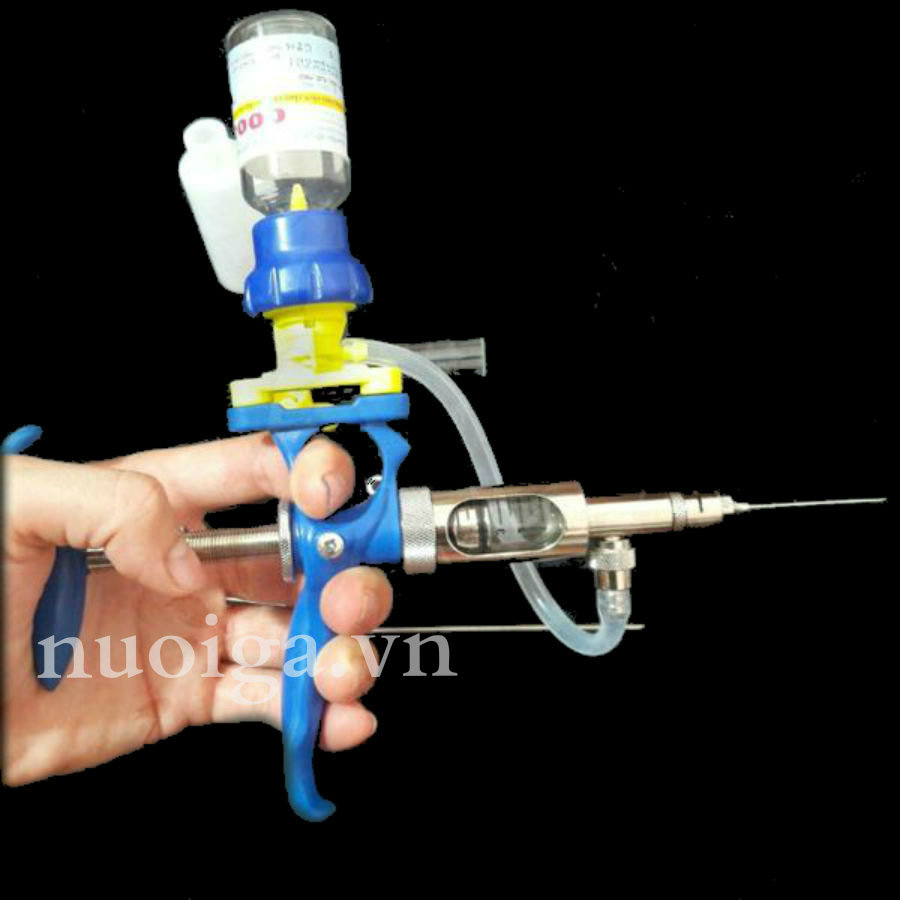 ■ Nếu bình thuốc nhỏ, từ 200ml trở xuống chúng ta có thể cắm thẳng vào thân xi-lanh để bơm trực tiếp vào gia cầm.