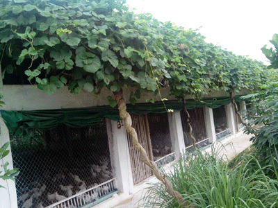 Vào mùa hè ở miền Bắc rất là nóng, mà chuồng gà lại chủ yếu lợp bằng ngói fibro xi măng nên nhiệt độ trong chuồng rất cao, có lúc nóng quá gà nhà tôi toàn bỏ ăn nên nuôi lâu mà không lớn. Sau khi thử nhiều cách thì tôi thấy có 2 cách để bà con đều có thể áp dụng đó là làm dàn mưa hoặc trồng sắn dây. Hiện tại nhà tôi đang áp dụng cách chồng sắn dây vì vừa đỡ chi phí mà lại bền. Cứ 2m một hốc sắn, sống được khoảng 5 năm, giảm nhiệt rất tốt mà mùa đông cũng ấm. Tôi cũng đã thử một vài cây khác như bìm bịp, chanh leo nhưng đều không tốt bằng sắn dây. sống lâu mà lại xanh tốt quanh năm.