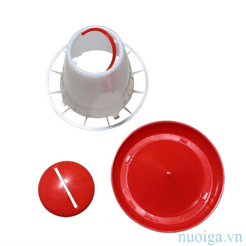 -Phần đế: Hình tròn khít và được gắn với phần thân bằng các chốt xoay linh hoạt. Trong máng chia làm nhiều ô ngăn cách có tác dụng chống bới, hạn chế thức ăn rơi ra ngoài hiệu quả.
