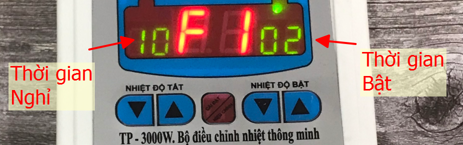 Khi bật sang chế độ F1 ở nút “cài đặt” máy sẽ điều khiển thiết bị theo thời gian định trước, chạy bao nhiêu phút rồi lại nghỉ bao nhiêu phút.