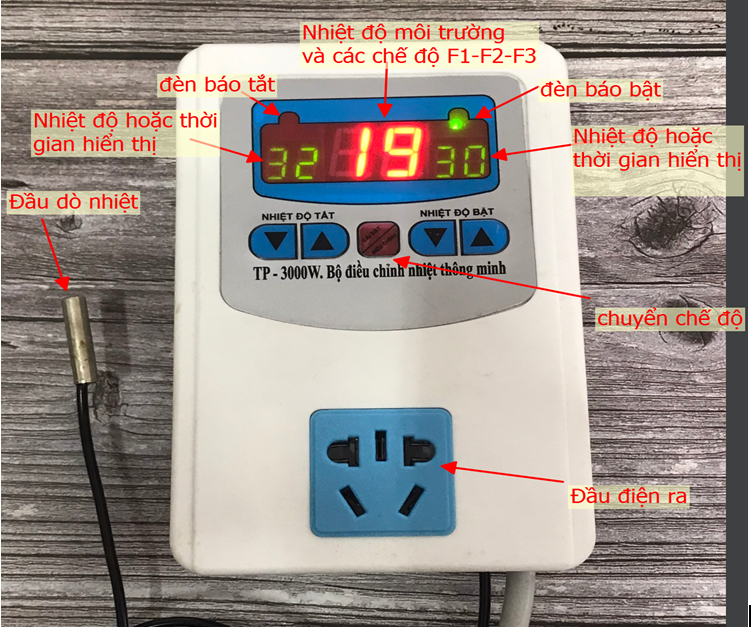 Dùng sưởi úm: Bạn muốn úm gà ở nhiệt độ 30°C → 32°C , bạn chỉ cần cài đặt nhiệt độ tắt là 32°C, nhiệt độ bật là 30°C, sau đó để đầu dò nhiệt vào trong quây úm. Lúc này máy sẽ tự động điều khiển bật tắt bóng úm để luôn giữ được nhiệt độ 30°C → 32°C trong quây úm.Dùng làm mát: Bạn muốn sử dụng cho máy bơm nước làm mát, hoặc thiết bị làm lạnh khác, ví dụ ở mức nhiệt 16°C → 18°C, thì bạn chỉ cần cài nhiệt độ tắt là 16°C ( vì thiết bị làm lạnh sẽ càng ngày làm nhiệt độ giảm xuống) , nhiệt độ bật là 18°C, để đầu dò vào bên trong là máy sẽ tự động điều khiển bật tắt máy bơm hoặc thiết bị làm mát ở nhiệt độ bạn cài đặt.