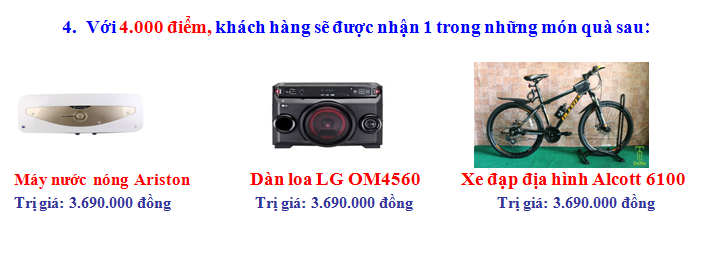 • Lưu ý: Điểm của Quý Khách có thể đổi lấy các phần quà tương ứng cho đến hết ngày 28/2/2018. Khi đổi quà, Số điểm của quý khách sẽ bị trừ trên hệ thống, và khi tiếp tục mua hàng, số điểm của quý khách lại tiếp tục tăng lên.